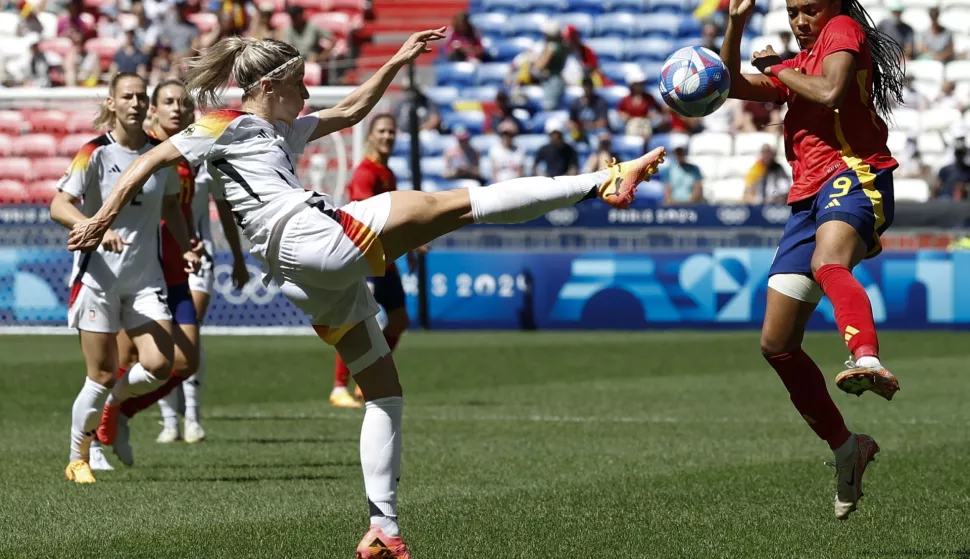 Nogometne reprezentativke Njemačke osvojile su brončanu medalju na Olimpijskim igrama, u utakmici za treće mjesto, koja se igrala u Lyonu, pobijedile su Španjolsku s 1:0 (0:0). Pogodak odluke vrijedan brončane medalje postigla je Giulia Ronja Gwinn u 65. minuti iz jedanaesterca. Španjolska je bila milimetrima blizu produžetaka jer joj je u sudačkoj nadoknadi dosuđen jedanaesterac. Proslavljena španjolska nogometašica Alexia Putellas preuzela je odgovornost, ali je njezin udarac s bijele točke obranila njemačka vratarka Ann-Katrin Berger. Time su njemačke nogometašice osvojile već četvrtu brončanu medalju u povijesti Olimpijskih igara. Jednom su bile i pobjednice turnira, dogodilo se to 2016. godine u Riju de Janeiru.