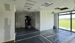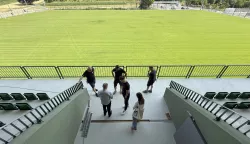Pokazali su nam domaćini svlačionicu za domaću momčad koju krasi sauna i minibazen, pa za goste, ali i posebne za mlađe uzraste iz Škole nogometa Vardarca koja ima veliki broj polaznika (stotinjak) ne samo iz Vardarca nego i ostalih okolnih mjesta. Na ulazu u stadion bit će postavljen simbol mjesta - veliki pijetao, malo dalje bit će kafić. U prizemnom dijelu su i ured za trenera, VAR soba, u kompleksu će biti i fitness centar, soba za masažu, prostorija za medije, suce, delegate, doping-kontrolu, službe sigurnosti, prostorija za sastanke... Sve se “glanca” jer stadion će prvu utakmicu i gledatelje ugostiti već u kolovozu.