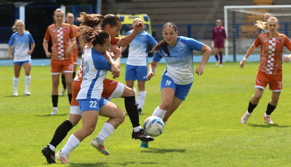 Službeno se i to dogodilo. Nogometašice Agrama podigle su u subotu prvi put pehar koji se dodjeljuje prvakinjama Hrvatske. Na promociji novih prvakinja na stadionu koji nosi naziv legendarnog Stjepana Spajića, u zagrebačkom naselju Siget, simbolično su u subotu gostovale dojučerašnje prvakinje, nogometašice Osijeka. “Agramerke” su puno prije osigurale naslov prvakinja, a svoju dominaciju potvrdile su i u susretu s viceprvakinjama Hrvatske, koje su u Zagreb stigle u prilično oslabljenom sastavu, bez svojih udarnih napadačica, kapetanice Lorene Balić i mlade reprezentativke Paule Petković. Agram je slavio sa 4:0, a sva četiri pogotka postignuta su u prvom poluvremenu. Mreža vratarice Osijeka Ariane Anastasiadis zatresla se već u 2. minuti. Strijelkinja je bila nekadašnja kapetanica Osijeka Maja Joščak. Joščak je postigla i četvrti pogodak za Agram, a prije toga mrežu Anastasiadis tresle su Dujmović i Bednarova, koja je u 20. minuti iznenadila vlastitu vratarku. Osim Joščak u subotu je u dresu Agrama zaigralo još nekoliko igračica koje su zimus napustile ŽNK Osijek nakon poznate afere, u kojoj su pozivale na štrajk nezadovoljne premijama. Tako su od početka susreta još igrale Kristina Nevrkla, Anela Lubina i Mateja Bulut, a u nastavku su ušle također bivše prvotimke Osijeka Mateja Andrlić i Izabela Lojna. Osječki trener Robert Špehar ponovno je pružio priliku i vrlo mladim igračicama. Kao po dogovoru, u 67. minuti kod Agrama su promijenjene tri igračice, a kod gošći na vrata je stala 16-godišnja Sara Rabar, a s njom ušla tek godinu starija Petra Balent. Špehar je mijenjao već na poluvremenu. Umjesto dvije Klare - Žuljević i Barišić, koje su dobile priliku od početka susreta, ušle su Lea Maričić i još jedna 16-godišnjakinja Ana Muhvić, a prvi put je u 77. minute priliku dobila i njezina vršnjakinja Laura Libić. Lijepa je to zaliha osječkog kluba za budućnost. Treba naravno i vremena i strpljenja.
