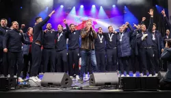 Dok se čekao dolazak rukometaša, za dobru atmosferu na Trgu bana Jelačića pobrinuli su se Daleka obala, Zaprešić Boys i Prljavo kazalište, a kad su stigli rukometaši, na pozornici im se pridružio i Marko Perković Thompson. Tad je nastao lom, bakljada i navijanje, a onda se Trgom zaorilo "Ako ne znaš šta je bilo"... Mnogi u tim trenucima nisu mogli sakriti suzu, ni navijači, a ni igrači.