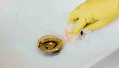 Očistite odvod octom i sodom bikarbonom