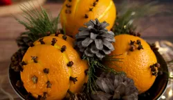 Napravite girlande od osušenih kriški naranče i limuna, ili ih iskoristite za ukrašavanje božićnog drvca. Ukrasi mogu biti i mirisni: kombinirajte štapiće cimeta, zvjezdasti anis i klinčiće za aromatične dekoracije koje možete staviti u zdjele, vijenac ili darove. Šuplju koru naranče iskoristite kao mirisni svijećnjak.