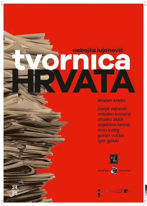 U Kazalištu Virovitica u petak, 15. listopada, u 19.30, premijerno će biti izvedena predstava “Tvornica Hrvata”, prema djelu Nebojše Lujanovića, dobitnika nagrade V.B.Z.-a za najbolji neobjavljeni roman 2023. godine. Riječ je o koprodukciji Kazališta Virovitica i Teatra Erato.