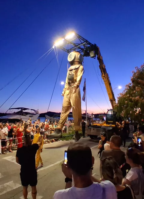 Gosti iz Španjolske sa sobom su donijeli deset tona opreme i satima slagali svoje impresivne lutke. Tri golema lutkarska diva koje animira 15 izvođača. Ovakvo što Šibenik još nije vidio - od ideje do realizacije prošle su dvije godine. U programu zatvaranja sudjelovalo je 250 izvođača, profesionalaca i djece iz Šibenika, a u fokusu je poruka o ekologiji.