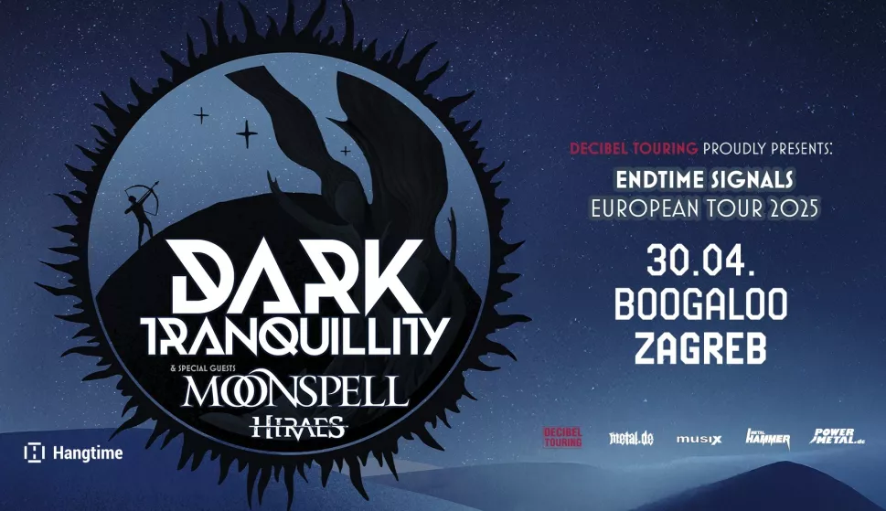 Švedski metalci Dark Tranquillity vraćaju se u Boogaloo klub nakon sedam godina u sklopu europske turneje „Endtime Signals“, a pridružit će im se portugalski gotičari Moonspell, koncert će se održati u srijedu, 30. travnja, objavio je organizator koncerta Hangtime Agency.