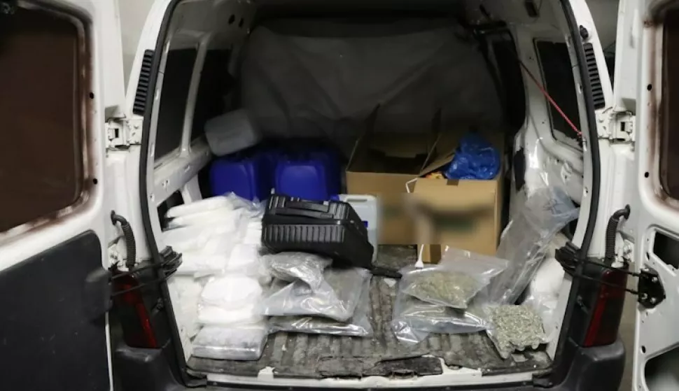 U subotu, temeljem naloga suca istrage Županijskog suda u Zagrebu, pretražena je podzemna garaža i u njoj parkirani citroen berlingo, kojom prilikom su pronađena 26 paketa s 28.118 grama amfetamina, jedan paket s 1174 grama kokaina i osam paketa s 5618 grama marihuane. Uz to, pronađeni su razni predmeti za pripremu, vaganje, pakiranje i preprodaju droge.