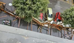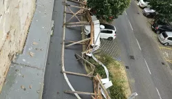 U Stepinčevoj ulici srušena skela, a koja je bila postavljena uz zgradu Hrvatske pošte, oštetila je brojna parkirana vozila