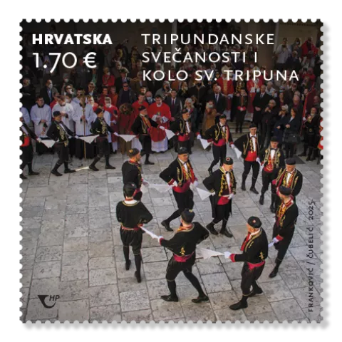 Hrvatska pošta stavila je u optjecaj nove prigodne poštanske marke iz serije Hrvatska nematerijalna kulturna baština – UNESCO. Ovaj put motivi na markama su kolo svetog Tripuna i sokolarenje (sokol Vitolda Košira). Autor izdanja je Orsat Franković, dizajner iz Zagreba, a autori fotografija Nedim Polovina i Petra Ana Čubelić, fotografi također iz Zagreba.