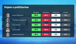 Zoran Milanović i dalje je najpozitivniji političar i o njemu 60 posto ispitanika ima pozitivno mišljenje, a 35 posto negativno. Za predsjednika nema tko nije čuo, a kakav dojam na njih ostavlja nije sigurno 5 posto ispitanika.