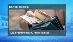 Na drugom je mjestu nezadovoljavajući životni standard i niske plaće, a slijedi korupcija i kriminal na visokoj razini. Među top pet problema u zemlji su još gospodarstvo i socijalni status umirovljenika.