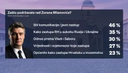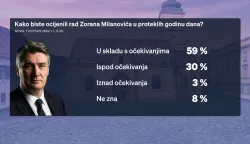 Iza nas je i godina dana mandata Zorana Milanovića koji manje javno nastupa, ali i dalje njeguje isti stil. Njegove poteze i odluke uglavnom odobrava 47 posto ispitanika, dok 43 posto uglavnom ne odobrava, a njih 10 posto ne zna. Ako trebaju navesti barem dva razloga zašto odobravaju, ispitanicima je na prvom mjestu njegov stil i javna komunikacija, za njih 46 posto. 35 posto ispitanih kažu da je razlog kako zastupa Hrvatsku u sukobu Rusije i Ukrajine. Odnos prema Vladi i Saboru je na trećem mjestu s 30 posto, vrijednosti i svjetonazor ima 27 posto, a kako zastupa Hrvatsku u inozemstvu je razlog zbog kojeg ga odobrava 23 posto ispitanika. Onima koji ne odobravaju njegov rad također je na prvom mjestu stil i komunikacija sa 63 posto, odnos prema Vladi i Saboru 29 posto, kako zastupa Hrvatsku u inozemstvu 27 posto, vrijednost i svjetonazor 19 posto te kako zastupa Hrvatsku u sukobu Rusije i Ukrajine 14 posto. Na pitanje kako bi ocijenili rad Zorana Milanovića u proteklih godinu dana, 59 posto ispitanika odgovara u skladu s očekivanjima, 30 posto ispod očekivanja, iznad 3 posto, a njih 8 posto ne zna.