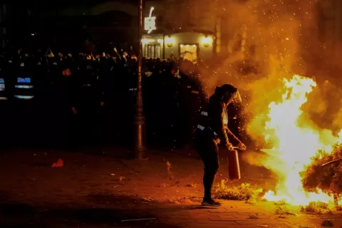 Dok je većina prosvjednika napustila mjesto događaja, nekoliko stotina ih je ostalo i nastavilo se sukobljavati s interventnom policijom, koja je dovela pojačanja i pokušala blokirati područje.