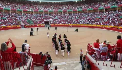U ovaj put cilj utrke bio je u areni za bikove, Plaza de Toros de Pamplona, gdje se odvijaju borbe. Arena, izgrađena davne 1922. godine, u srijedu je bila popunjena, 19.720 gledatelja, svi s prepoznatljivim crvenim šalovima, stisnulo se kako bi gledalo borbe s bikovima. Festival, koji je postao međunarodno poznat zbog romana Ernesta Hemingwayja "A sunce izlazi" (The Sun Also Rises) iz 1926., traje tjedan dana početkom srpnja.