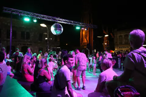 Posljednja Osječka ljetna noć prošla je u znaku 80-ih godina prošlog stoljeća. Na Trgu A. Starčevića od 20 do 23 sata širili su se zvuci jedne od najzanimljivijih dekada kada je glazba u pitanju, a čitavu večer publiku je zabavljao i animirao Osječanima dobro poznati plesni studio Shine, uz DJ-eve Lendvay i Paulus koji su probrali najbolje hitove. Cijeli je središnji gradski trg tako bio prostrana pozornica, ili plesni podij na kojem su kukove razgibali i profesionalni i amaterski plesači.