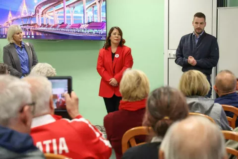 Stotinu je umirovljenika stiglo u petak Orahovicu, u Centar za edukaciju "Merkur", a odmah nakon prve radionice imali su gosta iznenađenja. Naime, pridružio im se osječki gradonačelnik Ivan Radić u društvu pročelnice Upravnog odjela za socijalnu zaštitu, umirovljenike i zdravstvo Romane Kovačević. Gradonačelnik i pročelnica porazgovarali su s umirovljenicima i saslušali njihova pitanja, a potom im se prigodno i obratili. Gradonačelnik Ivan Radić naglasio je kako se Grad itekako brine za umirovljenike u svakom smislu te kako je organizacija ovakvih aktivnosti samo jedna od gradskih mjera kojima se brine o sugrađanima starije životne dobi.