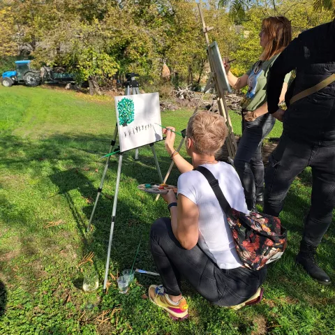 Svima je godio svjež zrak, vrijeme je bilo idealno za boravak u prirodi uz vatricu, pečenje domaće slanine i kobasice, u čemu su se posjetitelji također okušali. Ugođaj za pamćenje kako bi dan bio potpun i drukčiji od svih onih dana užurbane svakodnevice. Fina i pomno odabrana vina okrijepila su nepca. No, kako je program bio osmišljen tako da se uistinu za svakoga ponešto pronađe, kao šećer na kraju, a da pri tome ne mislimo na tradicionalnu gužvaru posluženu za desert, viša kustosica pedagoginja Kristina Delalić Vetengl predstavila je reprezentativno djelo Josipa Alebića iz bogatog fundusa Muzeja likovnih umjetnosti. Uz inspiraciju iz prirode ta je slika motivirala sudionike Vinske šetnje na izradu vlastite slike. Bili su oduševljeni uspješnim radovima! Muzej Slavonije za kraj se ovog predivnog druženja predstavio tradicionalnim baranjskim šokačkim vezom. Eva Balatinac demonstrirala je vez okupljenima te ih pozvala da i sami pokušaju izraditi određeni oblik na platnu.