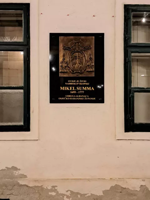 - Na 112. obljetnicu postavili smo ploču na kuću. kojoj je živio i umro nadbiskup skopski Mikel Summa. Čovjek je Albanac, zaređen za svećenika 1720. godine, a 1728. postao je nadbiskup skopski pa je sudjelovao u progonu i ratu protiv Turaka. U konačnici je premješten iz Skopja u Beograd, pa otamo u Petrovaradin i na kraju u Osijek. U ovom je gradu živio i radio kao biskup, na papiru pravno nije bio osječki biskup ali je kao biskup djelovao i radio 38 godina. Ovdje je sahranjen, ovdje mu je grob u Crkvi Svetog Križa tu u Tvrđi, nedaleko kuće u kojoj je živio. Udruga Albanaca Osječko-baranjske županije došla je na ideju da se obilježi na poseban način stavljanjem kamene oznake koja krasi kuču u kojoj je živio. Sve je to napravljeno u suradnji s Unijom Albanaca u Republici Hrvatskoj i s Udrugom Albanaca branitelja u hrvatskome Domovinskom ratu - pojasnio je Kačinari.
