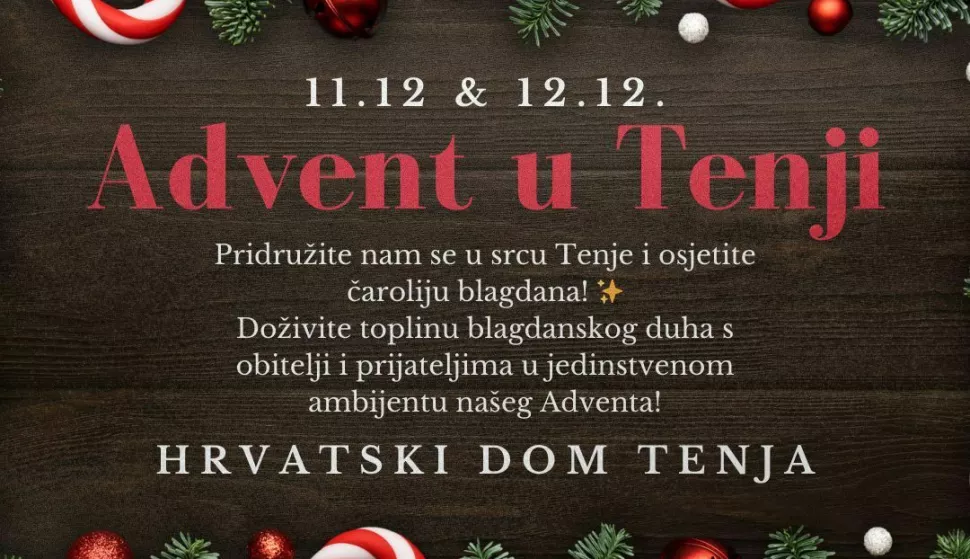 Nešto čarobno dolazi u Tenju - poručuje Josip Mihaljevć, predsjednik KUD Josip Šošić mnajavljujući da će se ove godine prvi put organizirati dvodnevni Advent u Tenji, 11. i 12. prosinca ispred Hrvatskog doma. Stoga je pozvao sugrađane da dođu i posjete dvodnevni program koji ide u organizaciji Mjesnog odbora Tenja i udruga s mještanima.