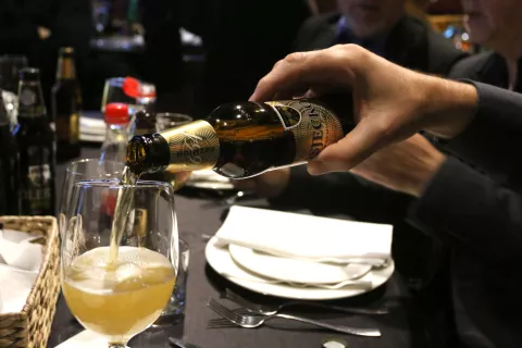 - Ovo se pivo bazira na vodi iz vlastitih arteških bunara. Voda je to iznimne kakvoće, koju mi dodatno filtriramo za naše tehnološke potrebe. Kod ukomljavanja išlo se procesom infuzije, pri kreiranju koristili smo dva slada, svijetli i karamelni, oba su dala punoću, sladni dodatno i aromu, te pjenu i prekrasnu zlatnu boju. Kad je riječ o hmelju, koristili smo aromatski i gorku sortu, kako bismo dali blagu gorčinu. Aromatski je hmelj dodan u kasnijoj fazi kako bi se što više arome zadržalo u finalnom proizvodu. Tu je i kvasac, koji se, istina, ne spominje u zakonu o čistoći, ali zato što tada nije postojao mikroskop. No jasno je kako bez kvasca ne bi bilo fermentacije, ne bi nastao cijeli niz spojeva, pa tako ni onih bitnih, poput alkohola i CO2. CO2 je taj koji daje gaziranost, koja pivu osigurava osvježavajući okus. No sve je ovo - vrhunske sirovine, dobra receprura i dobro vođenje procesa - mrtvo slovo na papiru bez majstora pivara. Naših ljudi, naših djelatnika, koji su sav svoj trud, svu kreativnost uložili u ovaj proizvod. Bez njih ne bi bilo ovog Preumium piva i zato im hvala - rekao je Paulik.