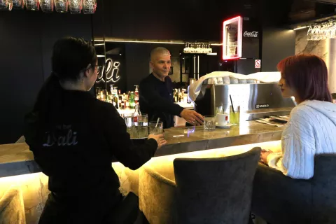 - Gosti, već dva tjedna od otvaranja, stalno dolaze, razgledaju i zadovoljno kimaju glavom, pa smo onda zadovoljni i mi - "kupili smo ih". Pogodili smo renoviranjem jer smo htjeli visoko postaviti ljestvicu i ugoditi ponajprije našim stalnim gostima, za koje su ipak ostavili i staru "Dalijevu" razonodu - pikado, ali je i on novi. Dobrodošli su, dakako, i novi gosti koji će tek razviti naviku redovitog dolaženja na kavu i čašicu razgovora.
