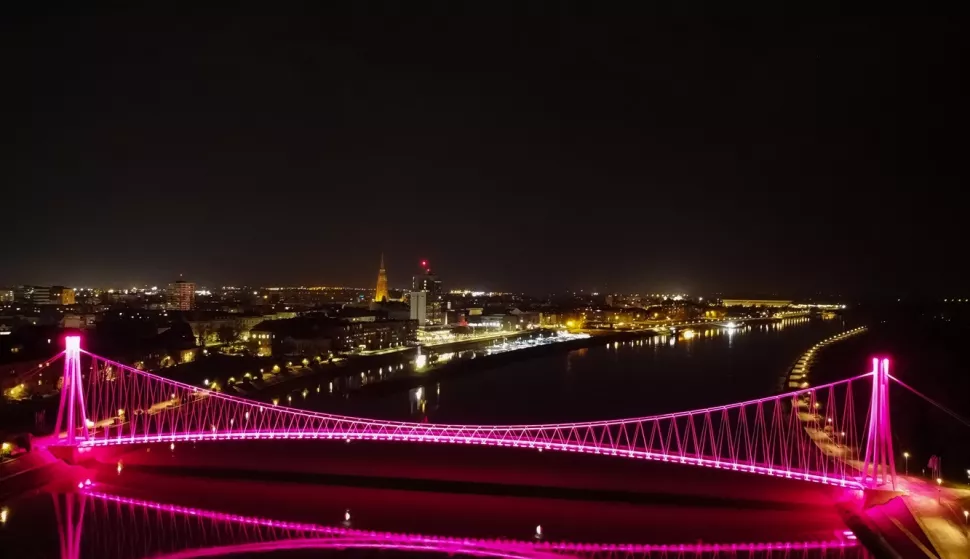 Osječki je pješački most zasjao u ružičastoj boji trešnjeva cvijeta, kao znak podrške međunarodnoj "Sakura kampanji" u povodu Ljetnih olimpijskih igara gluhih (Deaflympics) 2025. u Tokiju. Simbolična gesta izražava podršku hrvatskim sportašima s oštećenjima sluha, koji će s ponosom predstavljati svoju zemlju na ovom prestižnom natjecanju. “Sakura kampanja" organizirana je od Ureda za pripremu i provedbu Deaflympics igara, a njezin je cilj preko društvenih mreža prikupiti poruke podrške sportašima te ih dijeliti pod hashtagom #sakuradeaflympics. Kampanja poziva ljude diljem svijeta da dijele poruke podrške i objavljuju sadržaj u ružičastoj boji simbolizirajući procvat trešnje – glavnu boju Deaflympicsa 2025.