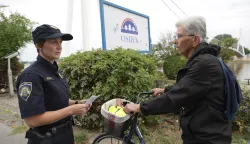 Darove je kod pješačkog mosta dijelila i Eleonora Matić, policijska službenica za poslove prevencije Ureda načelnika Policijske uprave osječko-baranjske, kojoj je Osječanka Tomica Matošević zahvalila na darovanom žutom prsluku, ali se Eleonori ujedno požalila kako ju je nedavno romobilist udario u rame rukom, pa je, pavši s bicikla, raskrvarila koljena. Doslovno samo nekoliko minuta nakon podjele darova kod pješačkog mosta policajka Matić morala je intervenirati u sudaru biciklista i pripomoći da ljudi dođu k sebi.