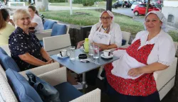 Tu su i članice dobro nam poznate Udruge Šokačka grana koje u izvornim narodnim nošnjama slavonskoga kraja nude palačinke punjene čime god vam srce poželi. Dvije palačinke za euro i pol, a prihod ide u humanitarne svrhe.