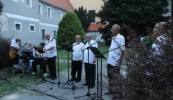 A uz to, kao naručena, od samo desetak metara udaljenog Prolaza Vanje Radauša dopirala je pjesma "Da te mogu pismom zvati" u izvedbi Klape Zrinski. Ovi prekaljeni interprete dalmatinske klapske pjesme nisu imali pojma što se događa iza njihovih leđa jer su bili usredotočeni na brojne posjetitelje koji su ih s velikom pozornošću slušali. Pjevali su o moru, maslinama, konobi i svim dobro nam poznatim motivima dalmatinske pjesme. Djeluju već 15 godina, a desetak godina svakoga ljeta njih osam uveseljava građane Osijeka s 20-tak klapskih melodija iz svog repertoara, kaže nam jedan od njih, Jure Jurković.