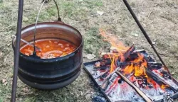 Hipnotički ih je mamio u dvorište lovačkog doma miris koji se širio čepinskim ulicama, a dodatno su ih omađijali zvuci tamburaša. Piće i sokovi bili su besplatni za sve sudionike i goste, a nepce se zagrijavalo nakoso odrezanim "proizvodima svinjca", pa se tako moglo strpljivo "preživjeti" do večeri, dok se grah u kotlićima lagano kuhao. Slaven Miškić iz ekipe organizatora kaže da su kulen i kobasica uobičajeni gastrododatci kad se druže prave ekipe momaka, suboraca i seoskih prijatelja.