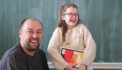 Ovogodišnjom smo temom likovnog natječaja željeli prvašiće potaknuti da kroz crtež ispričaju priču o svom mjestu, prirodi, obitelji ili prijateljima te da svoje prve školske dojmove pretvore u šarene poruke pune boja i emocija, a Leni je to savršeno pošlo za rukom, pa je nagrađena tabletom Redmi Pad SE Tablet 4+128 GB Graphite Gray, koji joj je u četvrtak u njezinoj školi uručio glavni urednik Glasa Slavonije Mario Mihaljević. Nagrađena je, i to poklon-bonom za profesionalno izbjeljivanje i čišćenje zuba Smile Designa Kovač, i Lenina učiteljica Ana Šili, a Lenini razredni kolege i kolegice (kao i njihovi prijatelji iz 1.a razreda), dobili su slatke pakete Kraša.