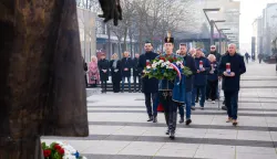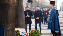 U povodu 26. obljetnice smrti prvog predsjednika RH, dr. Franje Tuđmana, pred spomenikom na Trgu slobode postavljenom njemu u spomen u srijedu su, uz počasnu gardu Hrvatskog sokola Osječko-baranjske županije, položila cvijeće i upalila svijeće izaslanstva Osječko-baranjske županije, Grada Osijeka i Koordinacije udruga proisteklih iz Domovinskog rata.