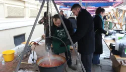 Grad Osijek i ove je godine na Badnjak održao tradicionalno blagdansko druženje sa sugrađankama i sugrađanima na Trgu Svetog Trojstva, gdje je podijeljeno 3.000 porcija ribljeg paprikaša.