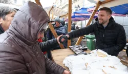 /Galerija/ Uz podjelu 3.000 porcija fiš-paprikaša, osječki gradonačelnik Ivan Radić sugrađanima je zaželio sretan i blagoslovljen Božić