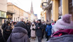 Neki kažu da su savršene mjere 90-60-90, a mi volimo reći da su 90-90-90. Visina konkatedrale je 90 metara, Osijek je jedna ravna palačinka na 90 metara nadmorske visine, i ne pijemo vodu iz Drave već iz dubokih bunara s 90 metara dubine. Brojka 90 nekako se veže uz naš život, a zanimljivo je da je Strossmayer doživio upravo 90 godina - započeo je besplatnu turističku šetnju Gornjim gradom turistički vodič Domagoj Butković. Ova se turistička šetnja u organizaciji Zajednice društava turističkih vodiča Hrvatske i Turističke zajednica grada Osijeka održava svake godine povodom dviju značajnih obljetnica iz moderne hrvatske povijesti koje se obilježavaju svakog 15. siječnja - Dana međunarodnog priznanja Hrvatske i Dana završetka procesa mirne reintegracije hrvatskog Podunavlja. Ove je godine fokus bio na Gornjem gradu, pa su tako Osječani i svi drugi koji su se ovog vikenda zatekli u gradu svoju turu krenuli od konkatedrale, preko Kapucinske ulice i hotela Royal koji je izgrađen 1904. godine, do Sakuntala parka, pa pored Drave promenadom ponovno do glavnog trga. Vodič se dotaknuo i prvog hrvatskog tramvaja, kibicfenstera i legende o Čarugi. Turističke šetnje poput ove organiziraju se u desecima hrvatskih gradova u sklopu projekta "Upoznaj svoju zemlju", a održavaju se od 2018. godine.