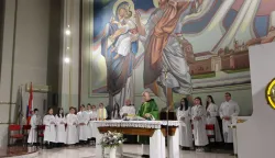 Klapa “Sveti Juraj” misno je slavlje počela pjesmom “Krist na žalu”, a prepuna crkva pridružila joj se u pjevanju. Svojim prepoznatljivim višeglasjem dala je posebnu svečanost liturgijskom slavlju te izvedbom dodatno obogatila misno zajedništvo vjernika. Misu je predvodio župnik Župe Svete obitelji, fra Dragutin Bedeničić, koji je nakon čitanja Evanđelja po Mateju kazao kako su prisutni građani, baš kao i apostoli, Isusovi sljedbenici te da nisu dio mnoštva koje za sebe govori da su katolici, ali ih ne dotiču Isusove riječi.