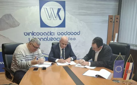 Direktor Vinkovačkog vodovoda i kanalizacije (VVK) Mario Komšić i direktor tvrtke Sokol d.o.o. Goran Elez potpisali su ugovor o izvođenju radova na izgradnji i rekonstrukciji mreže i uređaja javne vodoopskrbe u sklopu projekta "Izgradnja i rekonstrukcija vodnokomunalne infrastrukture na distributivnom području VVK". Cjelokupni je projekt vrijedan 53 milijuna eura, a financiran sredstvima iz Nacionalnog plana oporavka i otpornosti 2021. – 2026. (osigurano 41,4 milijuna eura nepovratnih sredstava), Hrvatskih voda, Ministarstva zaštite okoliša i zelene tranzicije i jedinica lokalne samouprave na čijim se područjima izvode radovi: gradovi Vinkovci i Otok te općine Stari Jankovci, Vođinci, Vrbanja, Babina Greda, Stari Mikanovci, Nuštar i Drenovci. Radovi izgradnje i rekonstrukcije mreže i uređaja javne vodoopskrbe vrijedni su 21,5 milijuna eura. Predviđena su tri projekta rekonstrukcije vodoopskrbnih cjevovoda i priključaka, dva projekta izgradnje vodosprema/crpnih stanica (VS/CS) i nastavak izgradnje cjevovoda Soljani - Vrbanja kao dijela regionalnog vodovoda istočne Slavonije. U Vinkovcima će se raditi rekonstrukcija vodoopskrbne mreže u dužini 15,77 kilometara uz rekonstrukciju 1067 vodovodnih priključaka.