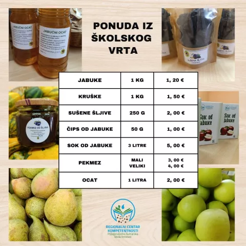 Aktualni su i radovi vezani za preradu voća i povrća, pa je završena berba jabuka, krušaka i šljiva, koje prerađuju u pogonima RCK-a opremljenim suvremenom opremom i tehnologijom za proizvodnju sokova, čipsa (po čemu je ova škola nadaleko poznata), octa i pekmeza.