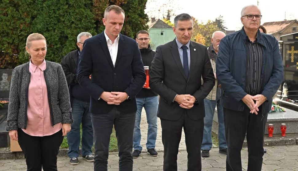 BELI MANASTIR - U povodu Svih svetih i Dušnog dana gradonačelnik Belog Manastira Tomislav Rob sa suradnicima, predstavnici belomanastirskog Gradskog vijeća na čelu s predsjednikom Igorom Pavelićem i članovi gradskog Odbora za branitelje Domovinskog rata zapalili su svijeće kod središnjeg križa na Katoličkom groblju. Učinili su to i brojni Belomanastirci.