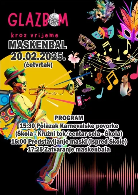 Tema je ovogodišnjeg maskenbala glazba (ritmovi 60-ih, disco-groznica 70-ih, rock 80-ih…), pa je manifestacija nazvana Glazbom kroz povijest. Sudionici će svojim maskama pokušati uprizoriti svojevrsno putovanje kroz glazbenu povijest. U programu sudjeluju učenici osnovne škole, polaznici dječjeg vrtića iz Kneževih Vinograda, Karanca, Suze i Zmajevca, a organizatori pozivaju i sve ostale mještane da im se pridruže i budu maskirani dio povorke.