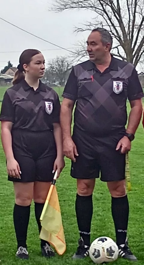 Zlatko (52) i Sara (16) Posavec sudili su mlađim pionirima NK Petlovac i NK Borac (Kn. Vinogradi)