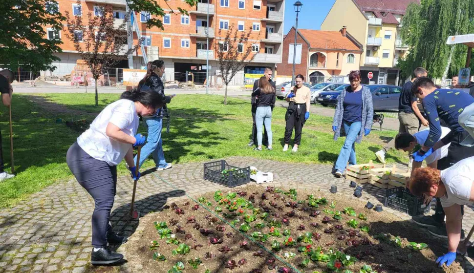 ŽUPANJA - U povodu obilježavanja Dana planeta Zemlje, djelatnici tvrtke Čistoće Županja, koji redovito brinu o uređenju i održavanju cvjetnih gredica na području grada, predvođeni voditeljicom Odjela prikupljanja otpada, hortikulture i tržnice Mandom Đurić, organizirali su u srijedu prijepodne u Parku tambure sadnju cvijeća i edukativnu radionicu. U akciji su sudjelovali i učenici Obrtničko-industrijske škole - smjer fitofarmaceuti s prof. Vericom Vestić, koji su se prihvatili posla i uredili cvjetne površine. Posađeno je 360 begonija uzgojenih u plasteniku Obrtničko-industrijske škole, a svojim će šarenilom i razigranošću oživiti Park tambure i dati mu poseban šarm, na veliko zadovoljstvo građana.