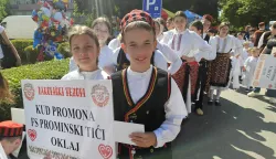 - Hvaljen Isus i Marija, pozdravlja vas Šokadija - za kraj povorke pjevala su djeca KUD-a Šokadija Budrovci, nakon čega se malovezovska povorka slila u hladovinu Strossmayerova parka, gdje su, nakon pozdravne riječi gradonačelnika Marina Mandarića, nastavila s dječjim pjesmama i plesovima.