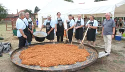– Stavili smo 70 kilograma graha, 65 kilograma suhomesnatih proizvoda - kobasice slanine i bunceka, nekoliko kilograma povrća, dakle, luka, mrkve, paprike, te začine, i to je to. Dobar žar na kraju i odlična ekipa od desetak ljudi za kompletnu pripremu. Najveća nam je sreća što je ljudima bilo ukusno – rekao je jedan od glavnih kuhara, Zoran Putniković, a njegov kolega Dražen Šafar naglasio je kako je riječ o peki promjera tri metra, koja je ukupno težila oko 1300 kilograma, a u njoj je pripremljeno i podijeljeno oko 700 porcija graha.