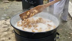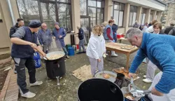 - Pripremili smo 150 kilograma leđne slanine i dvije svinjske polutke od 100-tinjak kilograma. Svi su proizvodi svježi i pripremljeni po domaćim receptima - kaže Marija Matišić-Kosanović, voditeljica Odsjeka kuhinje u Domu za starije i nemoćne, dodajući kako se čvarci tope “u pet tura”, te kako će ukusnih delicija biti dovoljno za sve. Uz kruh namazan svinjskom mašću, red na porciju čvaraka i kobasica čekao je vlč. Žarko Akrap, koji je u Domu već nekoliko mjeseci.
