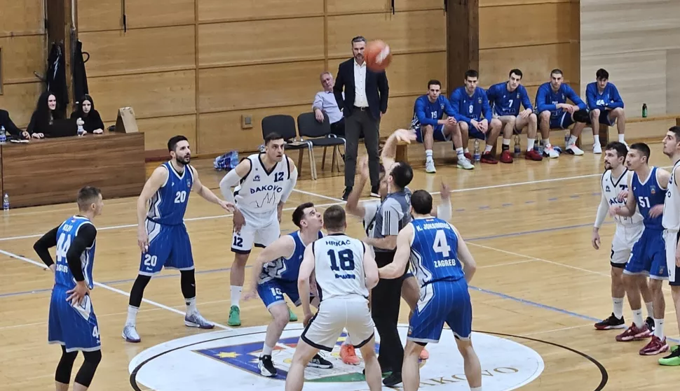 U tjednu uoči dolaska Zagreba odlučili su se u KK-u Đakovo i na šok-terapiju. Gorana Gunjevića, na klupi, je naslijedio njegov dosadašnji pomoćnik Miron Češkić, koji je zamalo imao i pobjednički debi. On se nije nazirao nakon prvog poluvremena, u kojem su košarkaši iz metropole sve imali pod kontrolom. Na semaforu je bilo 38:50, u trećoj četvrtini bilo je i plus 17, a u posljednju dionicu ušlo se s rezultatom 62:74. Domaćin je tada napokon malo stisnuo u obrani i prednost Zagreba počela se topiti. U 36. minuti ona je bila i minimalna (75:76), a sto sekundi prije kraja još je sve otvoreno. No kod 77:79 Joksimović je pogodio tricu i tako osigurao odlazak bodova u metropolu. Završilo je 79:82 (19:21, 19:29, 24:24, 17:8).