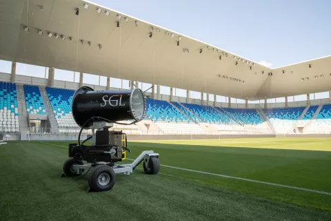 - Nerijetko se kosi svakodnevno, a prije utakmice se glavni travnjak toga dana prelazi čak tri puta! I nakon završetka utakmice odmah ide usisavanje. Imamo TC ventilatore SGL kojima se koristimo u ljetnom razdoblju za rashlađivanje i prozračivanje prostora jer je teren zatvoren tribinama i ima svoju unutarnju mikroklimu. To je nužno da bismo sačuvali vegetaciju kakvu želimo. Imamo četiri takva ventilatora kao i velike LED lampe 440 koje se još zovu "umjetno sunce". Tri su nam ovdje na Opus Areni uz dvije LED lampe 50. S obzirom na strukturu stadiona, polovina travnjaka nam je zatvorena i nema dovoljno sunca, pa trava bez takvog tretmana ne bi mogla rasti. Prevenciju čak radimo i svakodnevno s UVC lampama. Jednom tjedno obavlja se prozračivanje trave, a svakih sedam do deset dana idemo na terene i verti-cutom, koji prorjeđuje travu jer ne smije biti pregusta. Uz to i uklanja oronule travke.