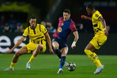 Golove za katalonski sastav zabili su Raphinha (25), Robert Lewandowski (48, 67) i Lamine Yamal (77). Uzvratni susret je 15. travnja u Dortmundu.