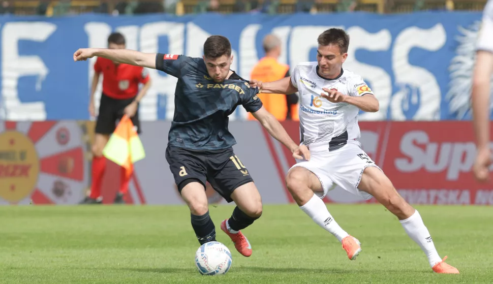 Velika Gorica, 23.04.2025. - Susret 31. kola HNL-a NK Gorica - GNK Dinamo. Na fotografiji Martin Baturina, Vito Čaić.