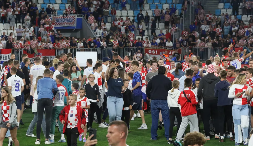 Lijepa je to bila slika za okačit na društvene mreže kada su nakon susreta navijači, uglavnom djeca, utrčali na travnjak Opus Arene i potom okružili hrvatske nogometaše. Lijepo je to bilo vidjeti, no, s druge strane, djelatnici NK Osijek, zaslužni što je nedavno travnjak Opus Arene ponovno proglašen najboljim u HNL-u, sigurno su se hvatali za glavu. Jer nije taj travnjak predodređen da njime koraća tisuću ljudi odjednom. Uostalom, nedavni techno party bio je ispod tribina Opus Arene, a ne unutar samog kompleksa. Dogodio se doista ozbiljan propust zaštitarske službe. Bez obzira na to što se radilo uglavnom o djeci, to se jednostavno nije smjelo dopustiti.