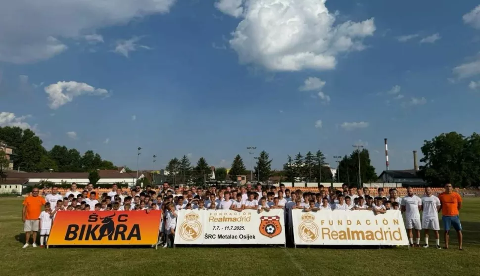 Na igralištu Nogometnog kluba Metalac, popularnoj Bikari, u ponedjeljak je počeo nogometni kamp Real Madrida. Djeca treniraju pod vodstvom trenera slavnog španjolskog kluba, kamp je namijenjen za djecu od šest do 16 godina, koja će trenirati do petka (11. srpnja). Treninzi se odvijaju prema metodologiji Realove akademije, a djevojčice i dječaci mogu štošta novog naučiti. Kamp je okupio oko 130 djece, većinom iz Osijeka i okolnih mjesta, ali, zanimljivo, među njima su i djeca iz inozemstva, iz susjednih zemalja! Zanimljivo, osim dječaka u Realovu kampu na Bikari treniraju i djevojčice, a svi sudionici nose tradicionalne Realove majice i gaćice. Treninzi se odvijaju uglavnom u prijepodnevnim terminima, uz jedan poslijepodnevni termin. Djeca su podijeljena u šest grupa, odnosno ekipa, nazvanih simbolično po igračima: Modrić, Vinicius, Mbappé, Valverde... Ne treba naglašavati koja je grupa najpopularnija! Kamp je organiziran u suradnji s Be Free Football, pod vodstvom Zlatka Marića, a lokalni koordinator za Osijek je Saša Voldin. Kraljevski klub ove je godine održao ili će održati više od 20 kampova diljem Hrvatske, s više od 2500 polaznika, a u toj turneji je i istočna Hrvatska.
